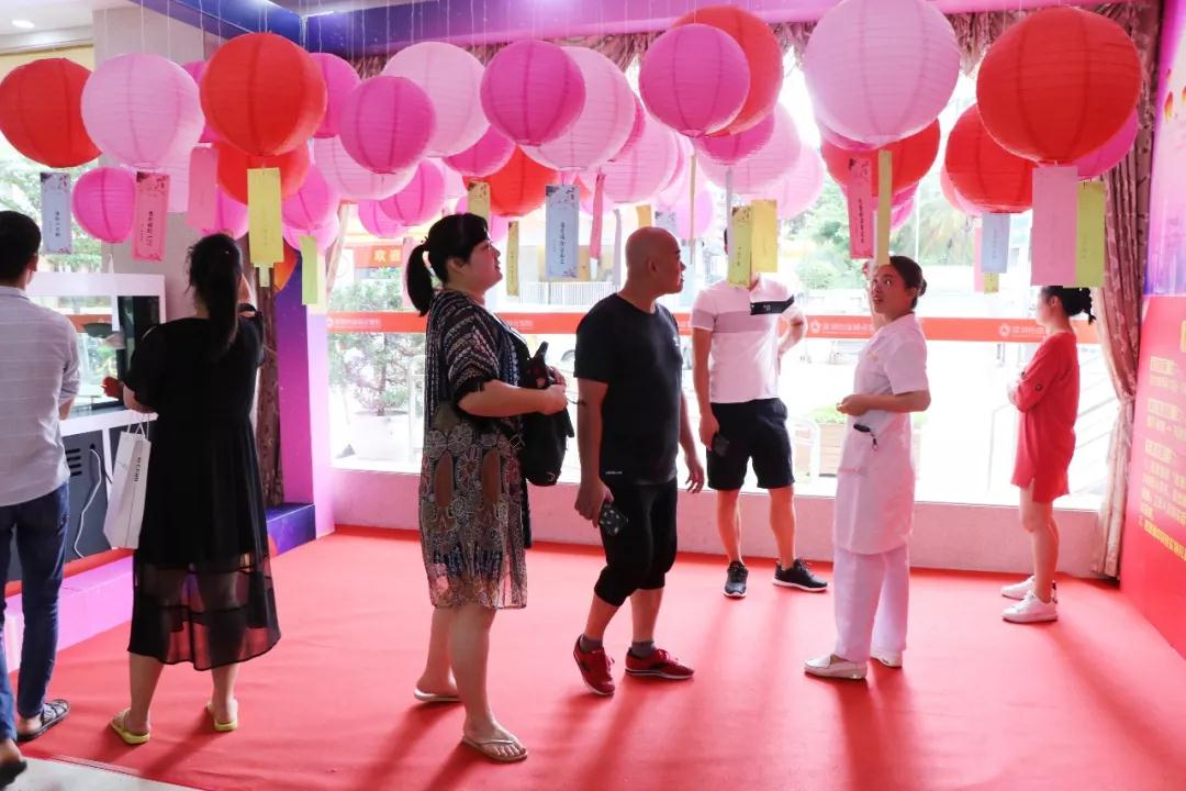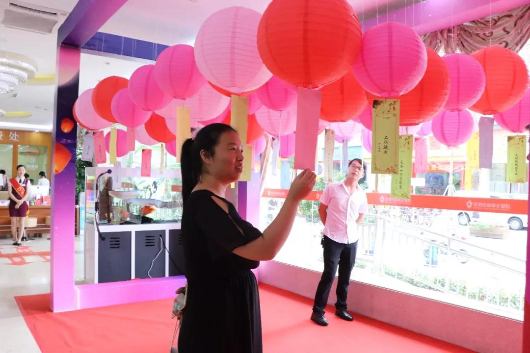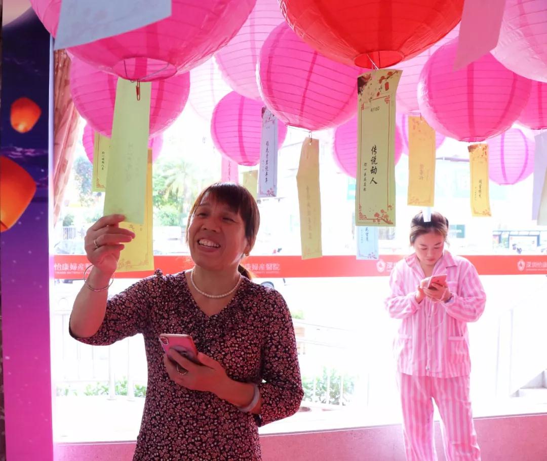 八楼别开生面的月饼制作火热进行中,一楼为期三天(9月13日-15日)的猜灯谜活动同样进行地如火如荼,为了让所有来院客户感受中国传统文化的魅力,放松身心,我院特别在一楼大厅开放灯谜区,飘逸的灯谜条加上精巧的纸艺灯笼,浓郁的传统佳节造型吸引了许多人拍照留念。丰富的抽奖礼品也让大家跃跃欲试,在挑选到有把握的谜面后,大家小心地摘下灯谜条,到抽奖区确认答案。回答正确的朋友兴奋地将手伸进抽奖箱中,抱着抽到的礼品笑容满面。