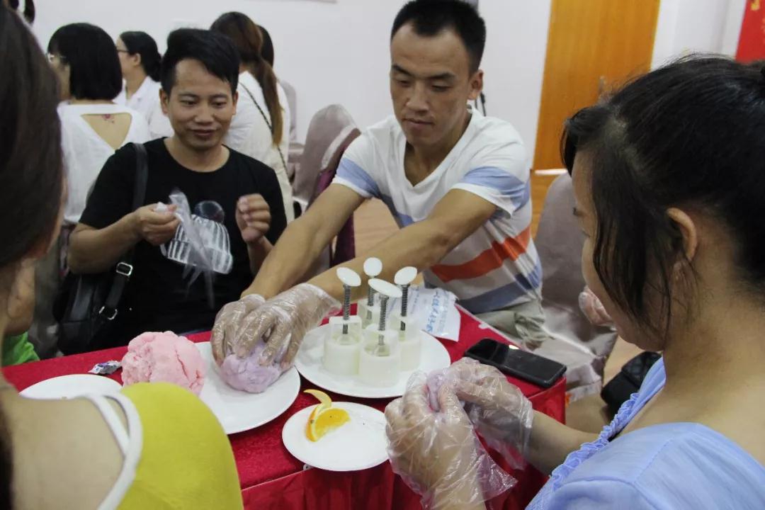 随后,我院妇科/生殖健康与不孕症孙艺光主任,为患者讲解了《不孕不育病因初筛》。孙主任讲到,生殖健康是大家都非常关心的问题,而大部分的家庭对自身健康的情况却缺乏必要的认知。有好孕需求的家庭需要及时查明病因、科学治疗疾病,早日摆脱疾病困扰,实现生育梦想!参会的家庭认真听讲,并不时拿出手机记录。在干货满满的授课及趣味十足的有奖问答结束后,现场来了几位特殊来宾,原来有一个求子家庭在中秋节当天圆孩子梦,开心之余,将带着好孕的喜糖分享给大家。在这温情的一幕过后,便开始了来宾们期待许久的冰皮月饼制作环节,伴随着面点老师的现场示范教学,大家迫不及待地戴起手套,开始领取材料。“把饼皮揉好、按压,包上馅,放进模具,再按压……对,就是这样。”在老师的指导下,一个又一个晶莹剔透的冰皮月饼制作完成。大家热情高涨,相互配合,将制作好的月饼小心翼翼地放入礼盒中,满载喜悦与祝福而归。