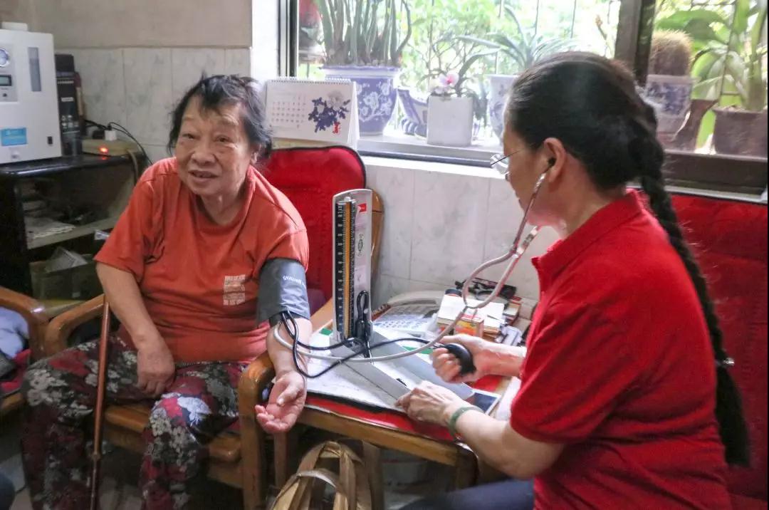 “高压230,低压110 ,血压很高,您今天服用了降血压的药了吗?”“没有,我忘记了”“要定时服用药物,才能保持健康”。刘颖党支部书记详细询问了肖惠珍老战士的身体状况,亲自测量血压,帮助老人服药,并叮嘱高血糖、高血压的日常注意事项。