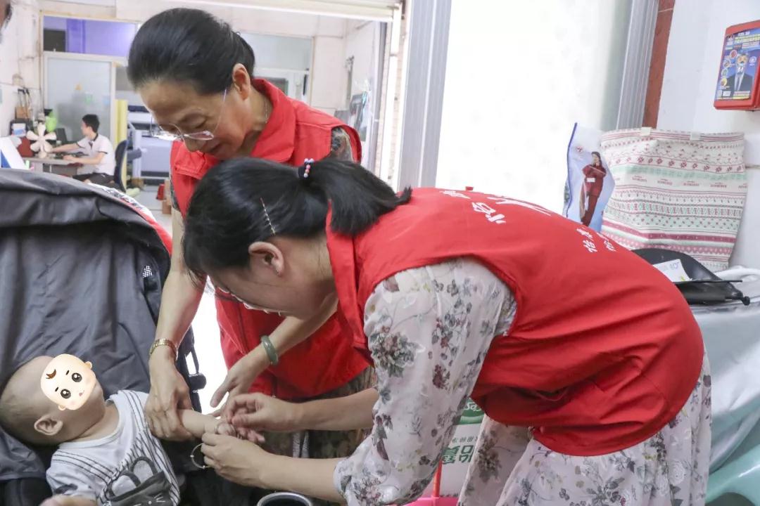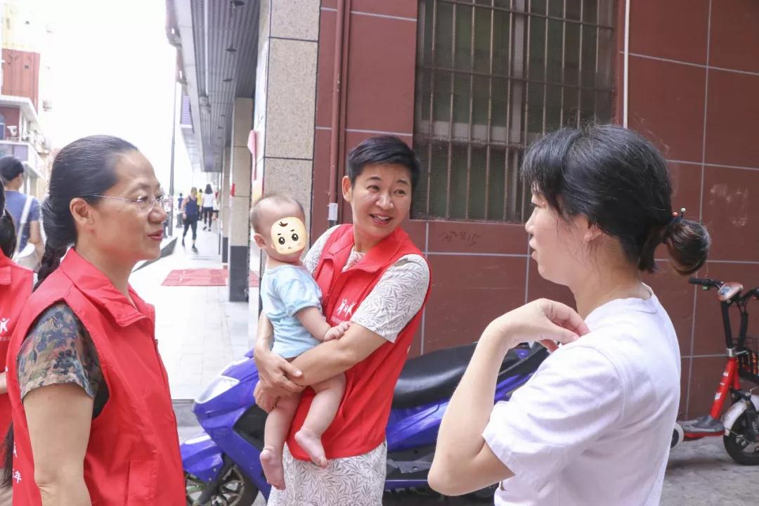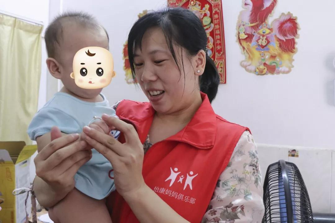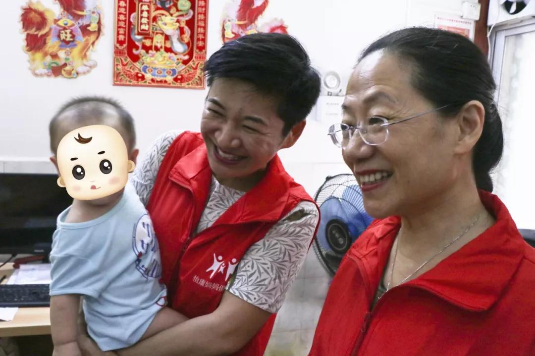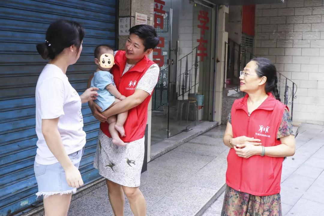 匡淑杰主任抱着宝宝与王女士聊着家常
