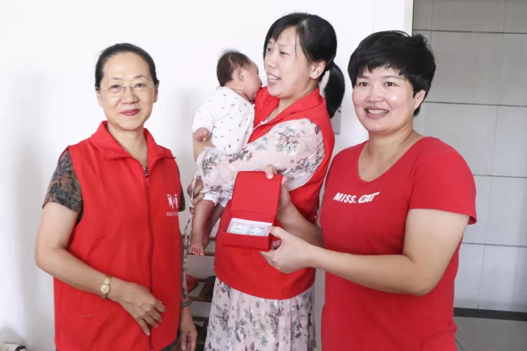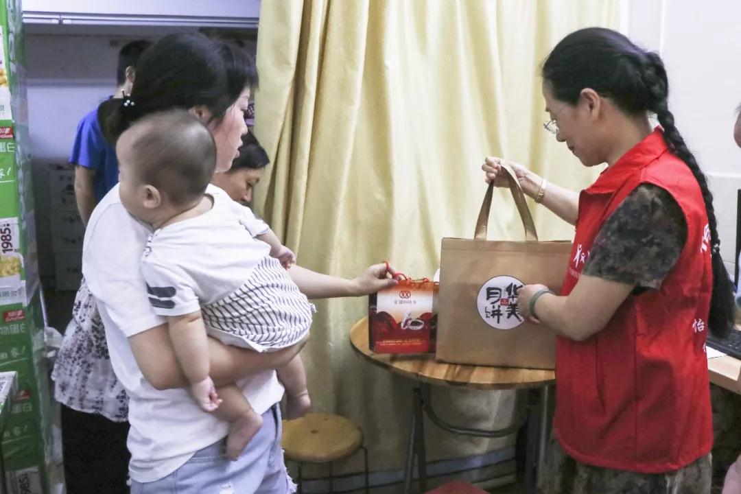 刘颖院长送上婴儿手推车、银手镯及月饼礼盒