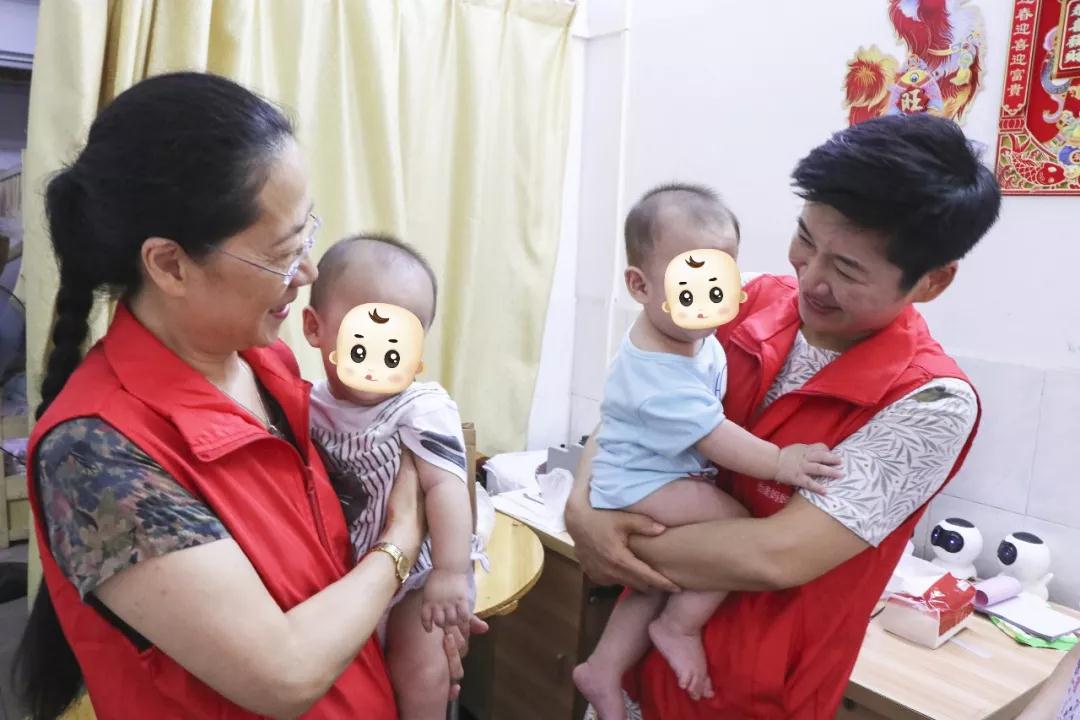 刘院长与匡主任欣慰地怀抱着两个可爱的宝宝