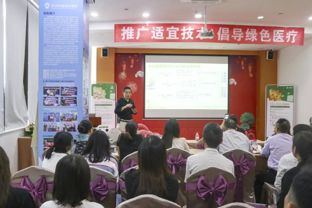 这是中国孕育工程(深圳站)系列活动暨天生讲堂之《中国良医工程》之后,深圳天生医药第二次在我院举办的中医基层医师培训。本次培训邀请了陕西省名老中医学术传承人王朕、陕西省名老中医郭宏珺学术传人张继忠分别进行了《儿童六大健康问题利君绿色调理方案》、《小儿推拿实操》讲座。